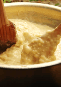 Millet is blended and heated with water.